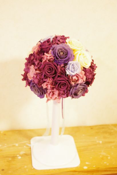プリザーブドフラワー ブーケリメイク 横浜ブーケ教室 Twitter Facebook はてブ Pocket LINE コピー 2012.12.16 レッスンで作っていただいたプリザーブドフラワーのブーケをアレンジにリメイクされました。 ご自分用☆ そしてプレゼント用☆ ベースとなったブーケはこちらです。 こうして長く楽しむことができるのはプリザーブドフラワーの特権! Happyのおすそわけ素敵ですね☆